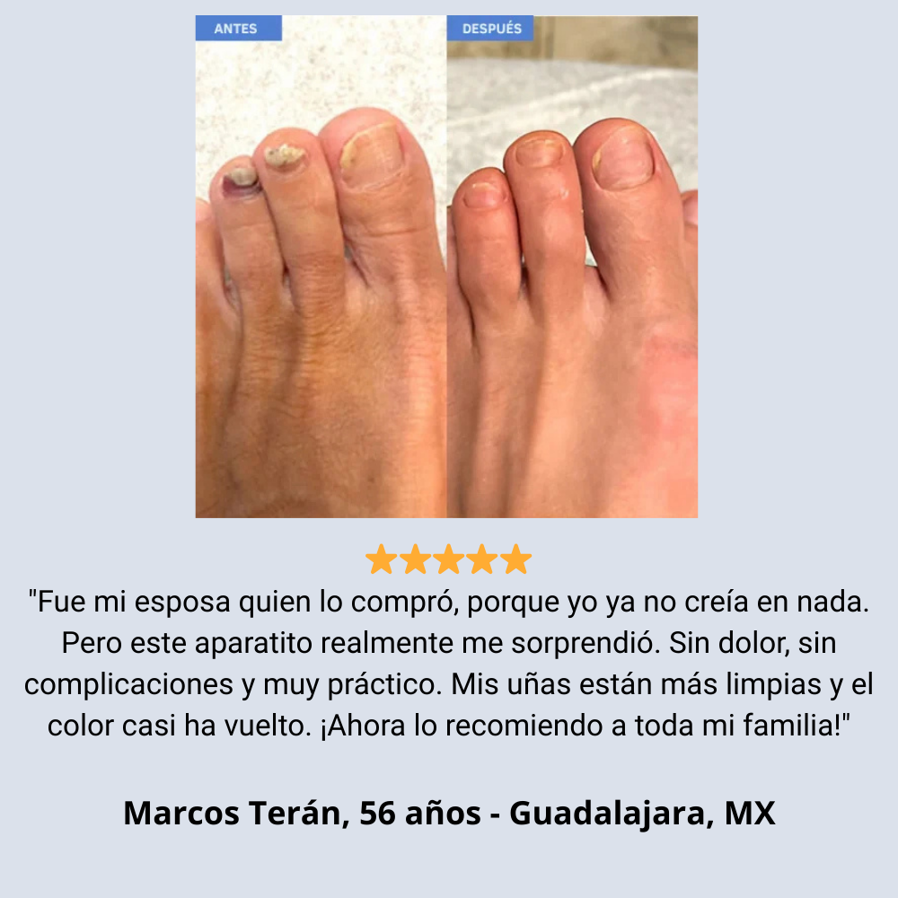 Tener hongos en las uñas no es solo un problema estético — también provoca incomodidad, vergüenza e incluso dolor. Muchas personas dejan de usar sandalias, evitan mostrar las manos y se sienten inseguras con su apariencia. Pensando en eso, presentamos NailPure™, el dispositivo de terapia con luz LED e infrarroja desarrollado para combatir los hongos de forma eficaz, segura y sin dolor.