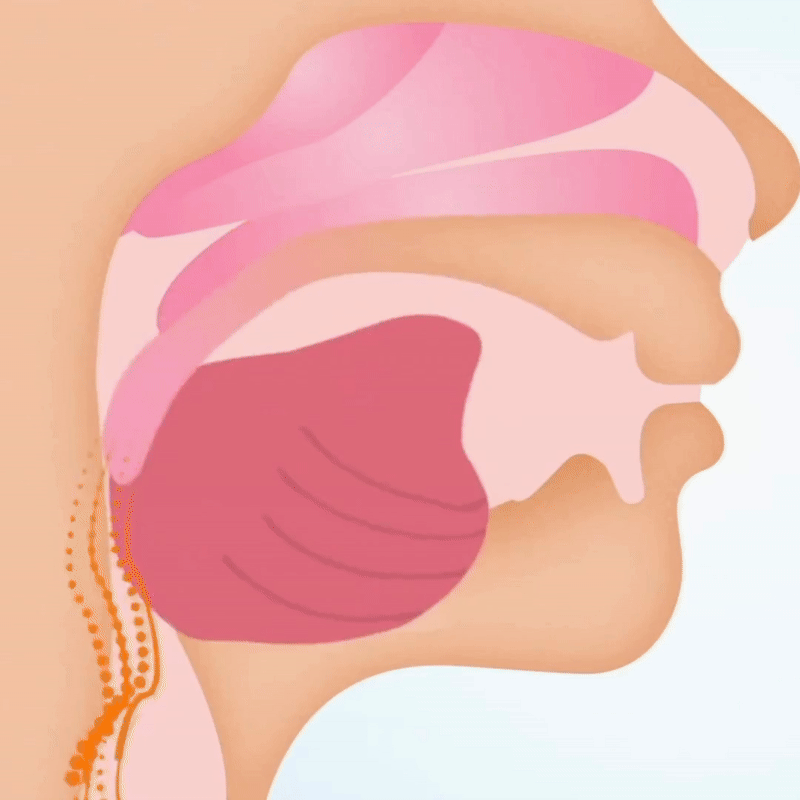 Cuando la mandíbula inferior se relaja durante el sueño, las vías respiratorias se estrechan; el ViaLibre™ adelanta suavemente la mandíbula, mantiene el paso del aire abierto y permite respirar sin vibraciones, logrando un sueño profundo y silencioso.